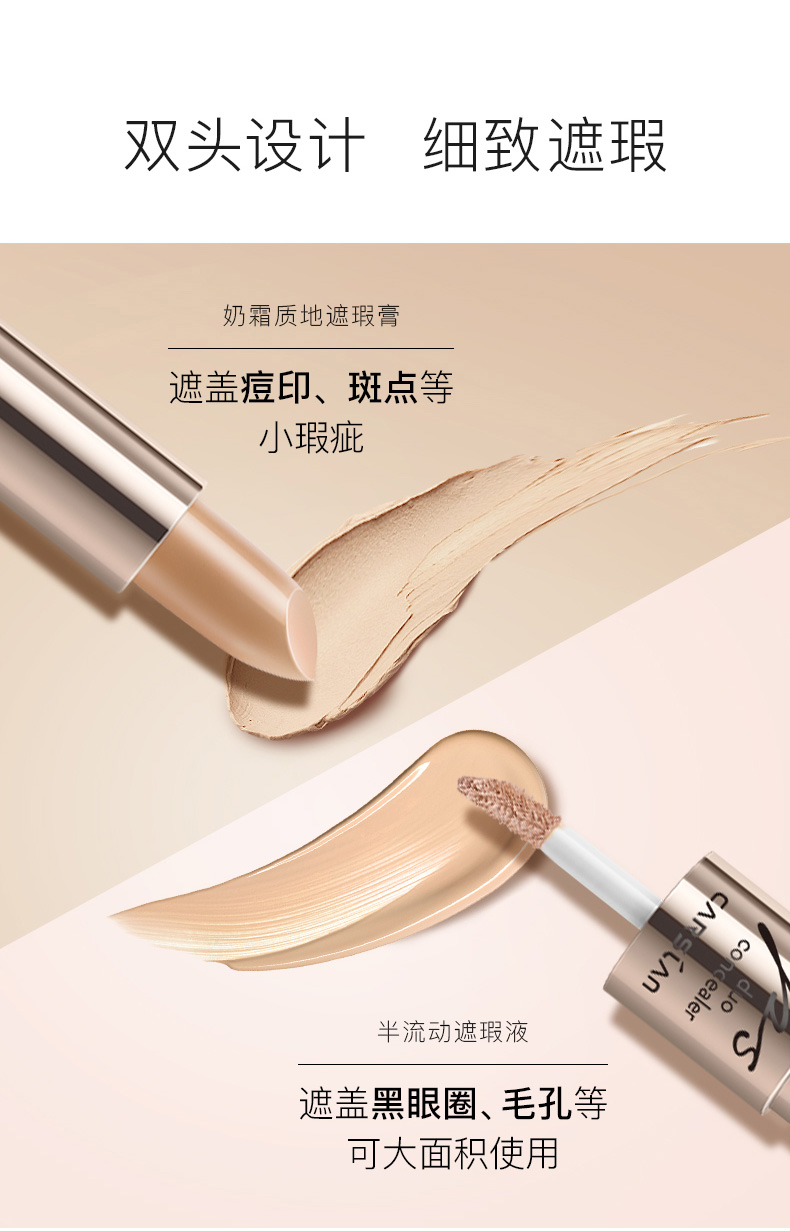 商品名称:卡姿兰(Carslan)精准遮瑕双头美颜笔 黑眼圈雀斑痘印眼袋(遮瑕液2.6g+遮瑕膏4.5g)