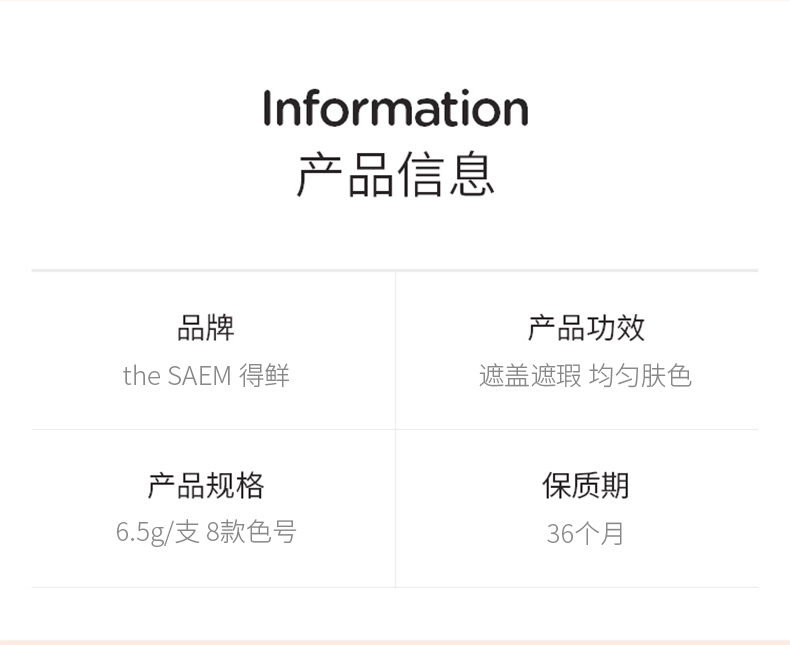 商品名称:得鲜 the saem 韩国原装进口 丝滑遮瑕液 遮瑕棒1#亮肤色6.5g节日礼物
